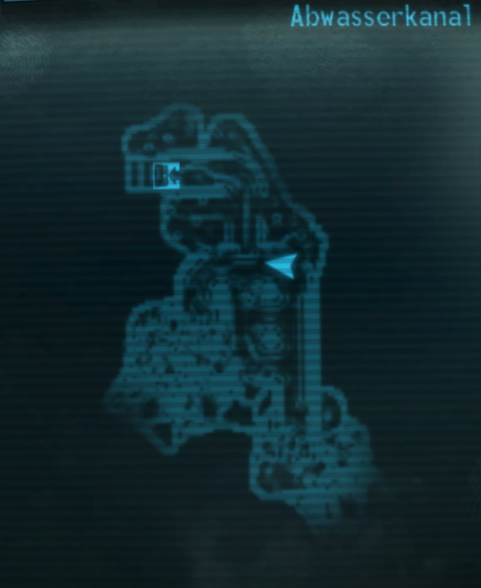 Innerhalb dieses Abwasserkanal liegt das Strahlungsniveau bei +1 Rad/Sek., mit Strahlenschutzanzug ist es auszuhalten. Er ist mit Träger-Säulen versehen und ist teilweise eingestürzt. Blutbeutel säumen die Gänge, ein paar Schritte weiter gelangt man an zwei kurzen Gängen. Rechts findet man zwei tote Ödländer. Im Gang links findet man drei Regale mit etwas Beute.