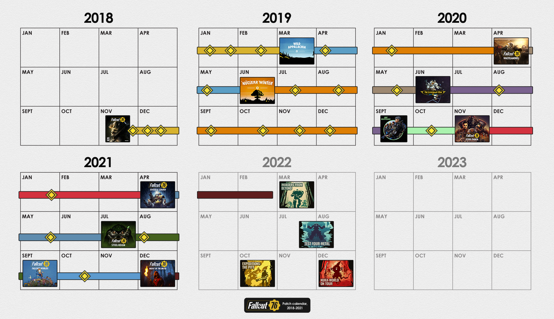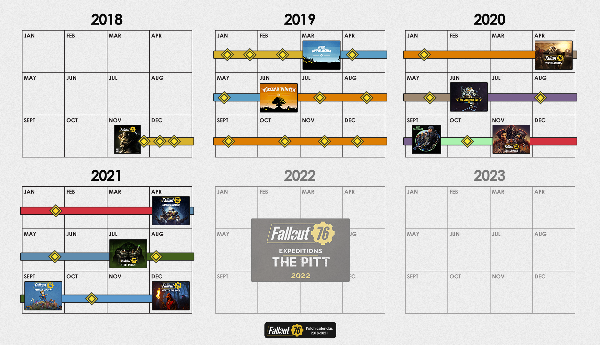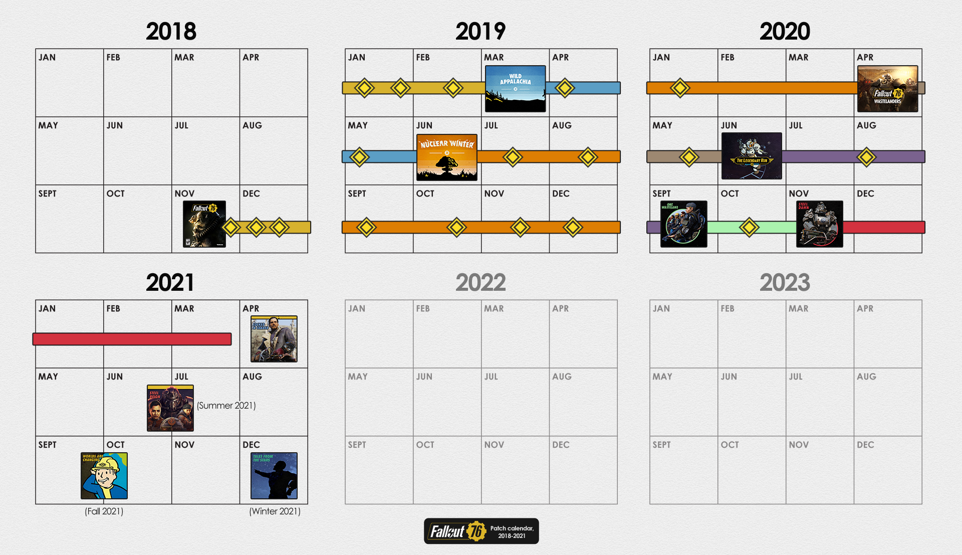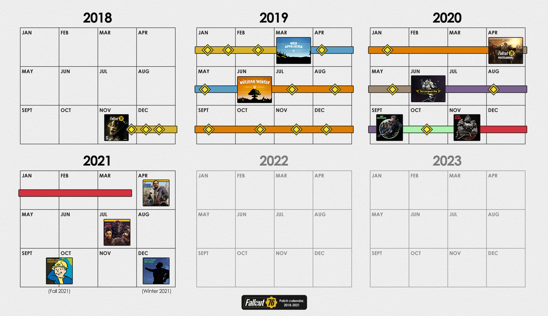 | 23:24, 28. Sep. 2021 | 1.920 × 1.107 (1,91 MB) | CamelChip579208 (Diskussion | Beiträge) | Updated for Fallout Worlds, newest 2021 roadmap | ||