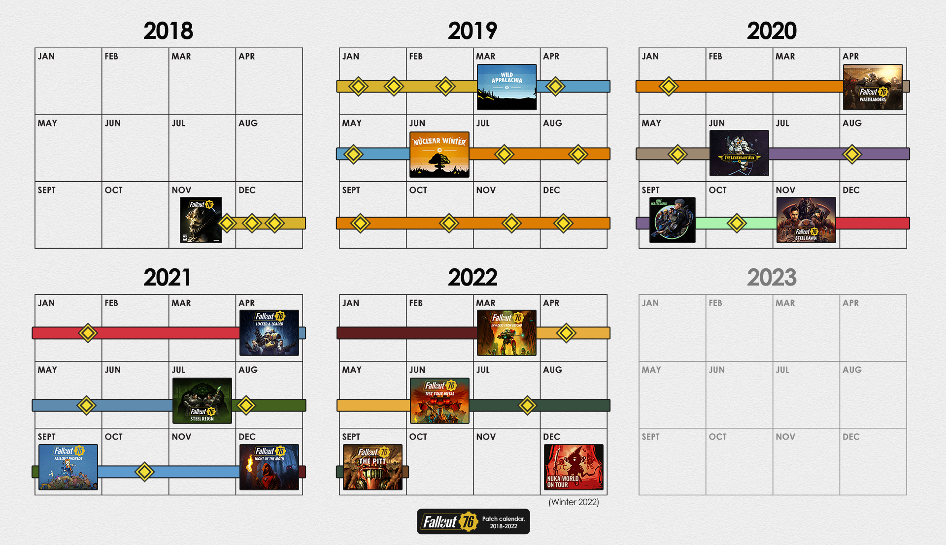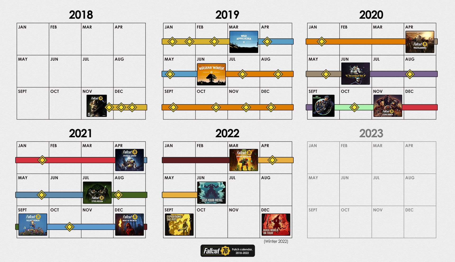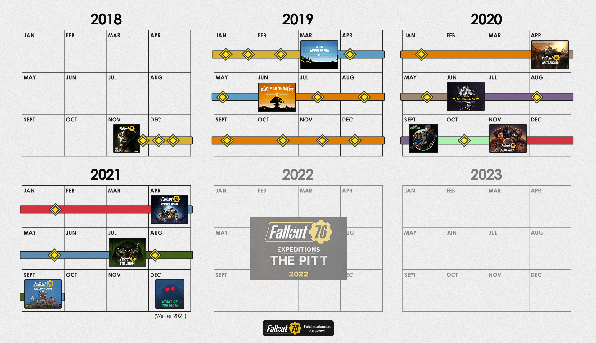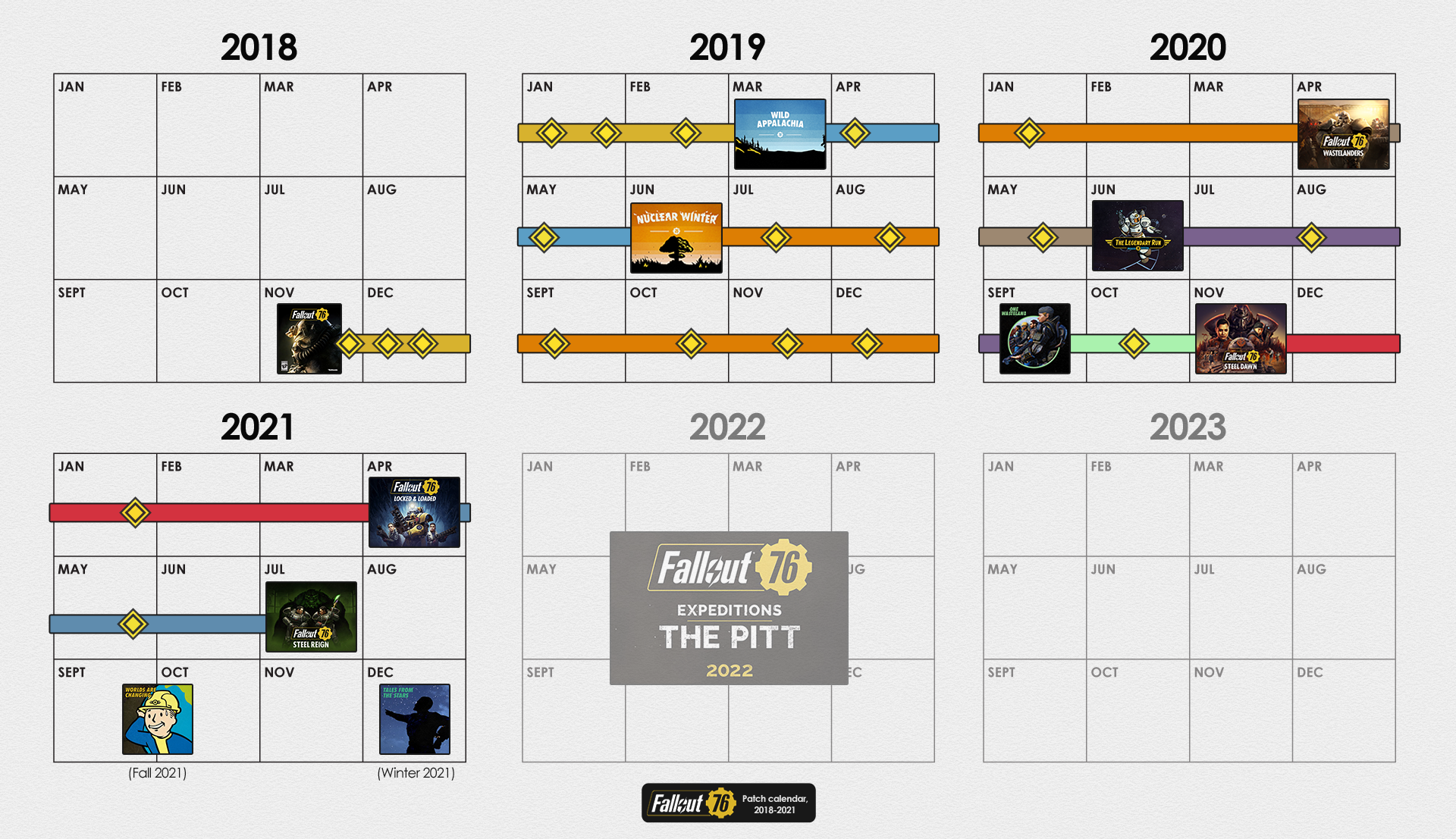 | 23:24, 28. Sep. 2021 | 1.920 × 1.107 (1,91 MB) | CamelChip579208 (Diskussion | Beiträge) | Updated for Fallout Worlds, newest 2021 roadmap | ||
