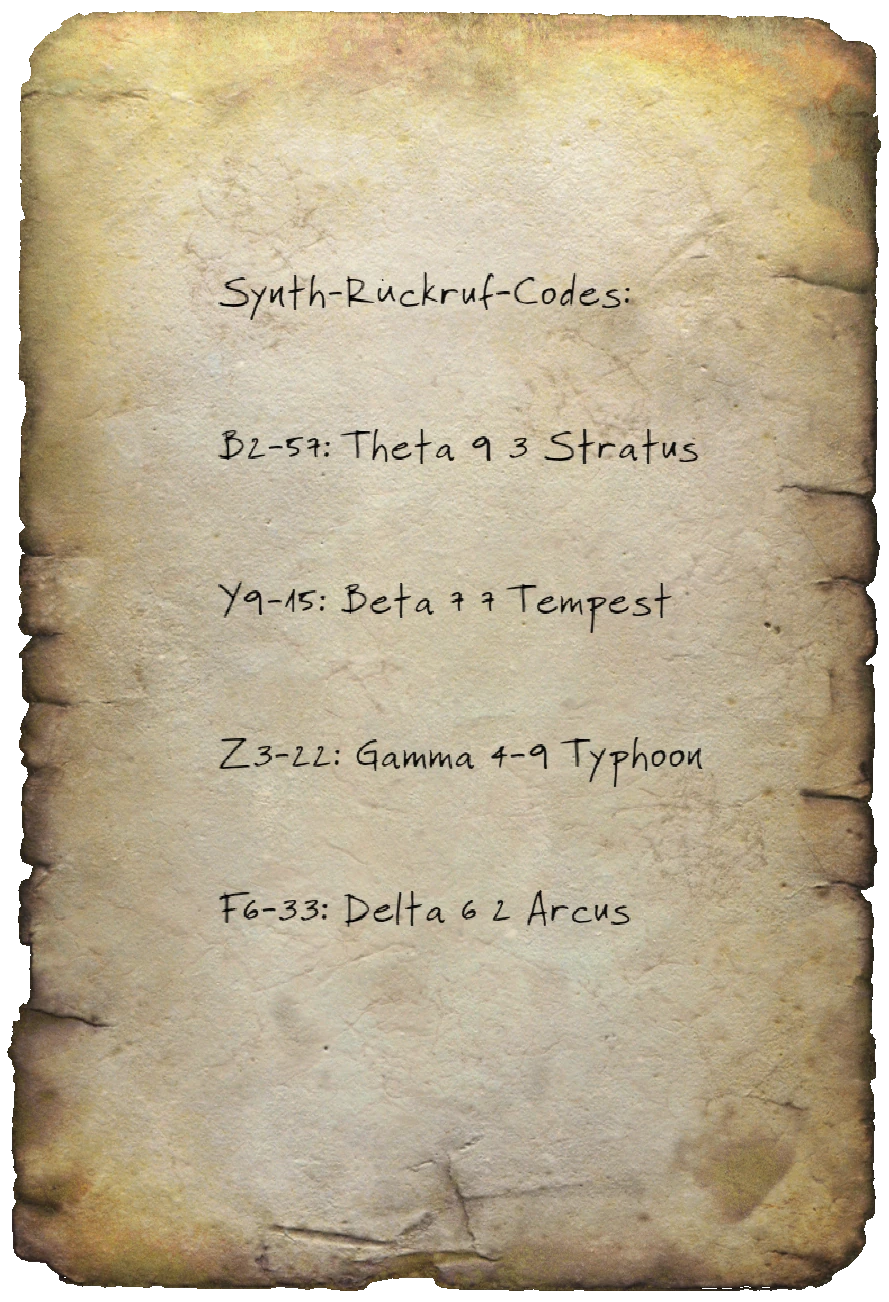 Rückruf-Codes (engl. Recall Codes) ist eine Notiz in  Fallout 4.