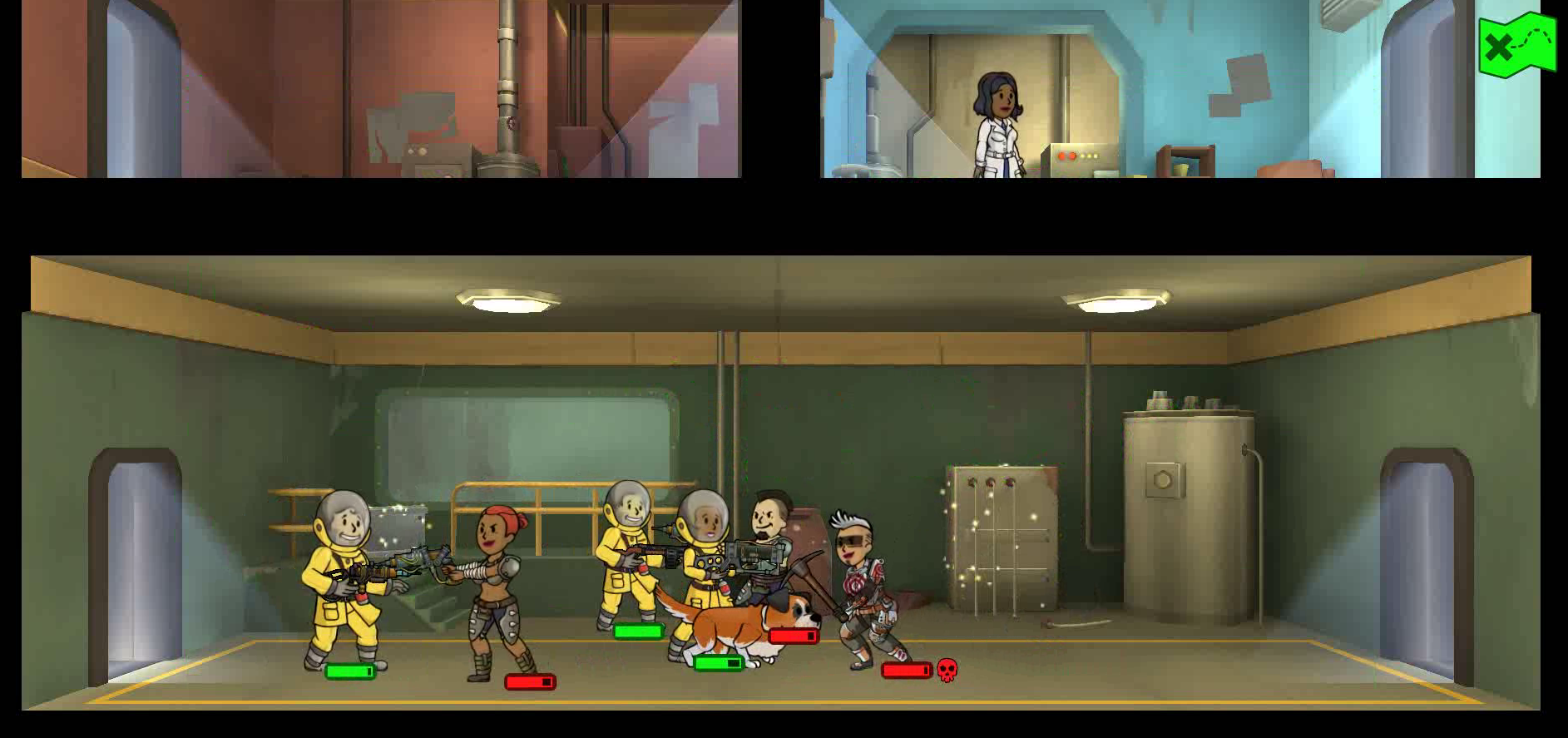 | Diese Datei stammt aus dem Video-Spiel Fallout Shelter oder von Webseiten, die von Bethesda Softworks erstellt wurden und deren Urheberrechte bei Bethesda Softworks liegen, oder wurde von dieser für Werbezwecke an die Presse abgegeben. Alle im Bild enthaltenen Marken und eingetragenen Marken sind Eigentum von Bethesda Softworks. Es wird davon ausgegangen, dass die Verwendung der Bilder zur Illustration von Artikeln, die das Thema der fraglichen Bilder betreffen, als faire Verwendung im Sinne des US-amerikanischen Urheberrechtsgesetzes gilt, da eine solche Darstellung das Recht des Urheberrechtsinhabers zum Verkauf des urheberrechtlich geschützten Materials nicht wesentlich einschränkt und in diesem Zusammenhang nicht dazu verwendet wird, Gewinn zu erzielen. |