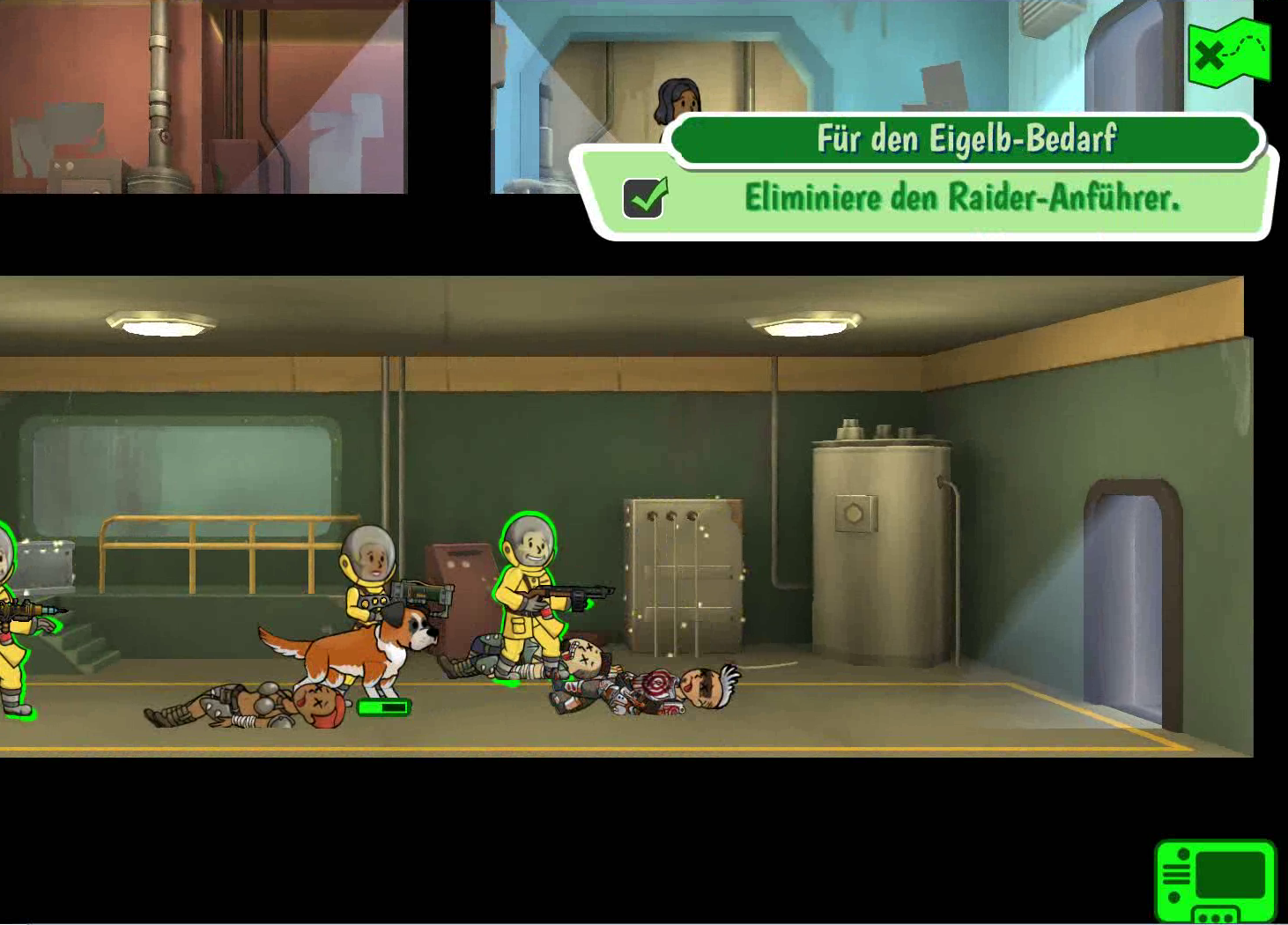 | Diese Datei stammt aus dem Video-Spiel Fallout Shelter oder von Webseiten, die von Bethesda Softworks erstellt wurden und deren Urheberrechte bei Bethesda Softworks liegen, oder wurde von dieser für Werbezwecke an die Presse abgegeben. Alle im Bild enthaltenen Marken und eingetragenen Marken sind Eigentum von Bethesda Softworks. Es wird davon ausgegangen, dass die Verwendung der Bilder zur Illustration von Artikeln, die das Thema der fraglichen Bilder betreffen, als faire Verwendung im Sinne des US-amerikanischen Urheberrechtsgesetzes gilt, da eine solche Darstellung das Recht des Urheberrechtsinhabers zum Verkauf des urheberrechtlich geschützten Materials nicht wesentlich einschränkt und in diesem Zusammenhang nicht dazu verwendet wird, Gewinn zu erzielen. |
