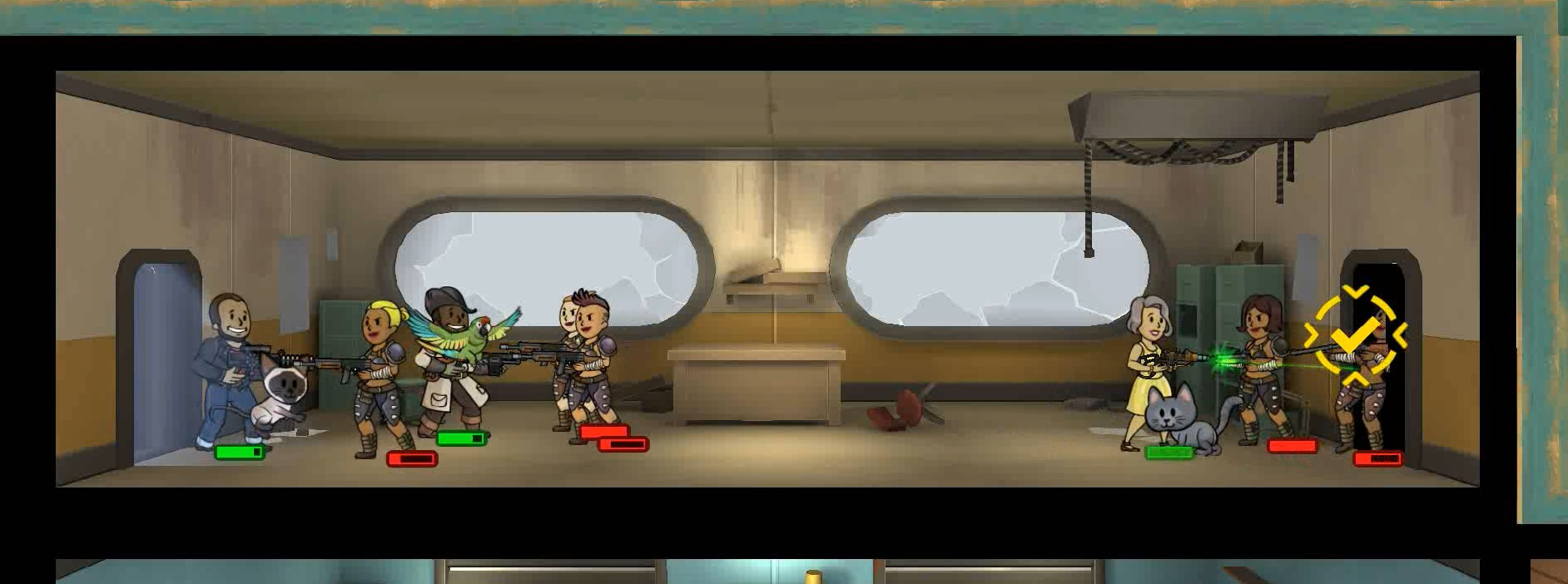 | Diese Datei stammt aus dem Video-Spiel Fallout Shelter oder von Webseiten, die von Bethesda Softworks erstellt wurden und deren Urheberrechte bei Bethesda Softworks liegen, oder wurde von dieser für Werbezwecke an die Presse abgegeben. Alle im Bild enthaltenen Marken und eingetragenen Marken sind Eigentum von Bethesda Softworks. Es wird davon ausgegangen, dass die Verwendung der Bilder zur Illustration von Artikeln, die das Thema der fraglichen Bilder betreffen, als faire Verwendung im Sinne des US-amerikanischen Urheberrechtsgesetzes gilt, da eine solche Darstellung das Recht des Urheberrechtsinhabers zum Verkauf des urheberrechtlich geschützten Materials nicht wesentlich einschränkt und in diesem Zusammenhang nicht dazu verwendet wird, Gewinn zu erzielen. |