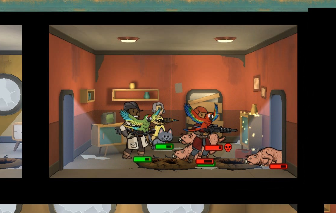 | Diese Datei stammt aus dem Video-Spiel Fallout Shelter oder von Webseiten, die von Bethesda Softworks erstellt wurden und deren Urheberrechte bei Bethesda Softworks liegen, oder wurde von dieser für Werbezwecke an die Presse abgegeben. Alle im Bild enthaltenen Marken und eingetragenen Marken sind Eigentum von Bethesda Softworks. Es wird davon ausgegangen, dass die Verwendung der Bilder zur Illustration von Artikeln, die das Thema der fraglichen Bilder betreffen, als faire Verwendung im Sinne des US-amerikanischen Urheberrechtsgesetzes gilt, da eine solche Darstellung das Recht des Urheberrechtsinhabers zum Verkauf des urheberrechtlich geschützten Materials nicht wesentlich einschränkt und in diesem Zusammenhang nicht dazu verwendet wird, Gewinn zu erzielen. |