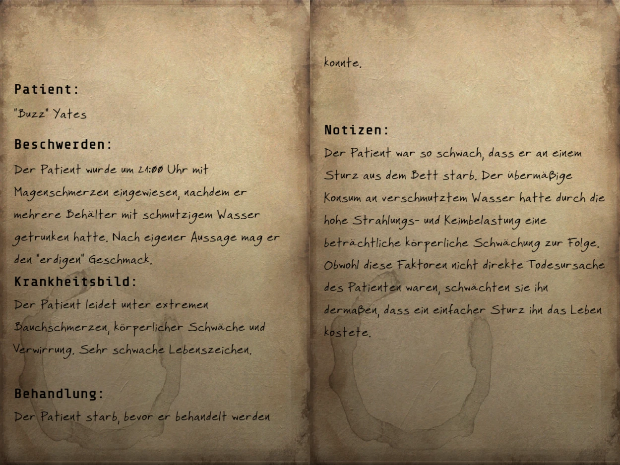 | Diese Datei wurde in dem Video-Spiel Fallout 76 aufgenommen oder stammt von Webseiten, die erstellt und im Besitz von Bethesda Softworks sind, deren Urheberrecht von Bethesda Softworks beansprucht wird. Alle im Bild vorhandenen Warenzeichen und eingetragenen Warenzeichen sind Eigentum von Bethesda Softworks. Die Verwendung von Bildern in Artikeln zur Veranschaulichung des Themas der fraglichen Bilder gilt nach dem US-amerikanischen Urheberrechtsgesetz als fair use, da eine solche Darstellung das Recht des Urheberrechtsinhabers, das urheberrechtlich geschützte Material zu verkaufen, nicht wesentlich beeinträchtigt und in diesem Zusammenhang nicht dazu verwendet wird, Gewinn zu erzielen. |