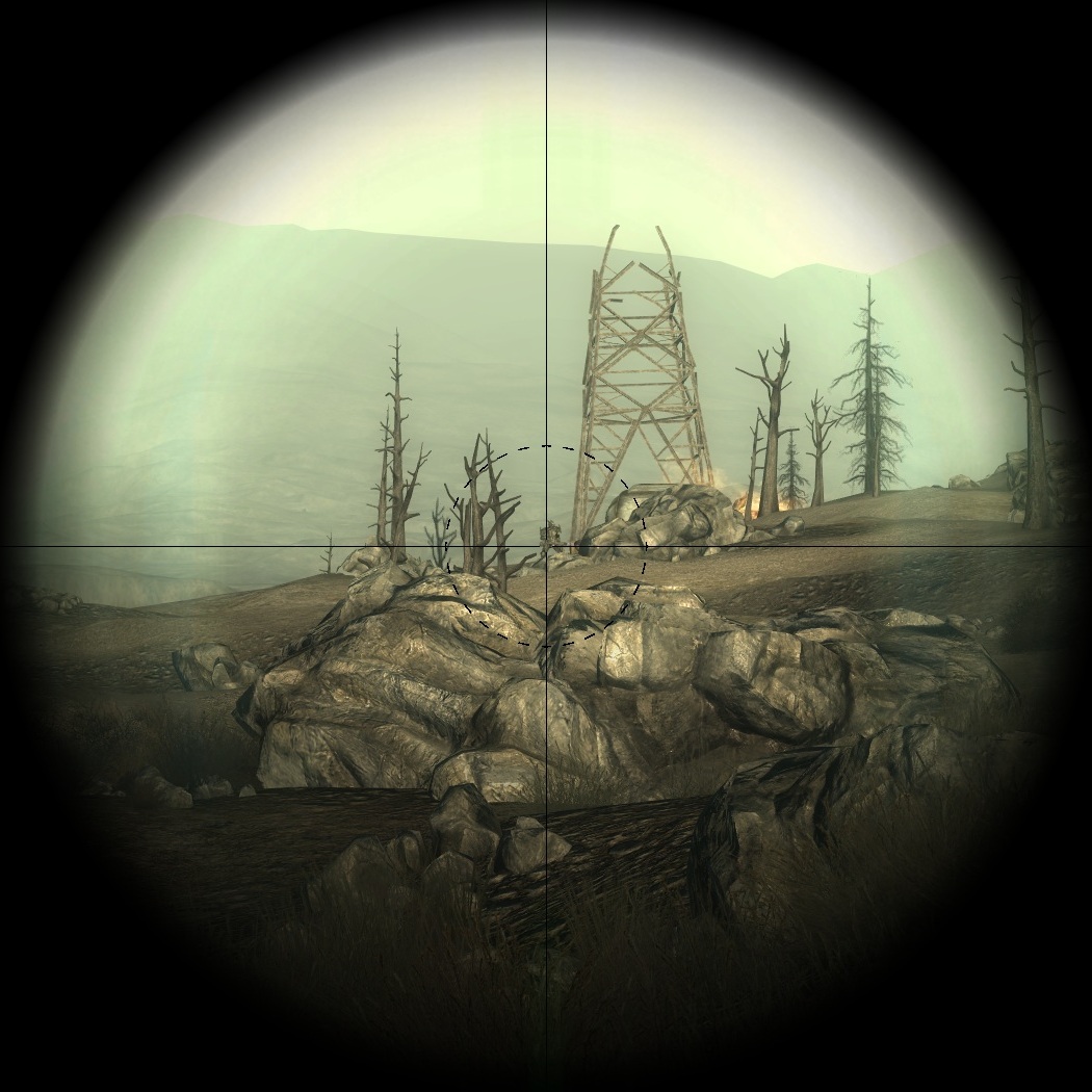| 22:08, 25. Okt. 2009 | 1.680 × 1.050 (237 KB) | Ehplee (Diskussion | Beiträge) | This shows where to aim to get a head shot with a Sniper Rifle and its variants using the scope at very long range. The effective range of the Sniper Rifle is as far as the game can draw the NPCs, as can be seen by how small the person in the picture is.~ |