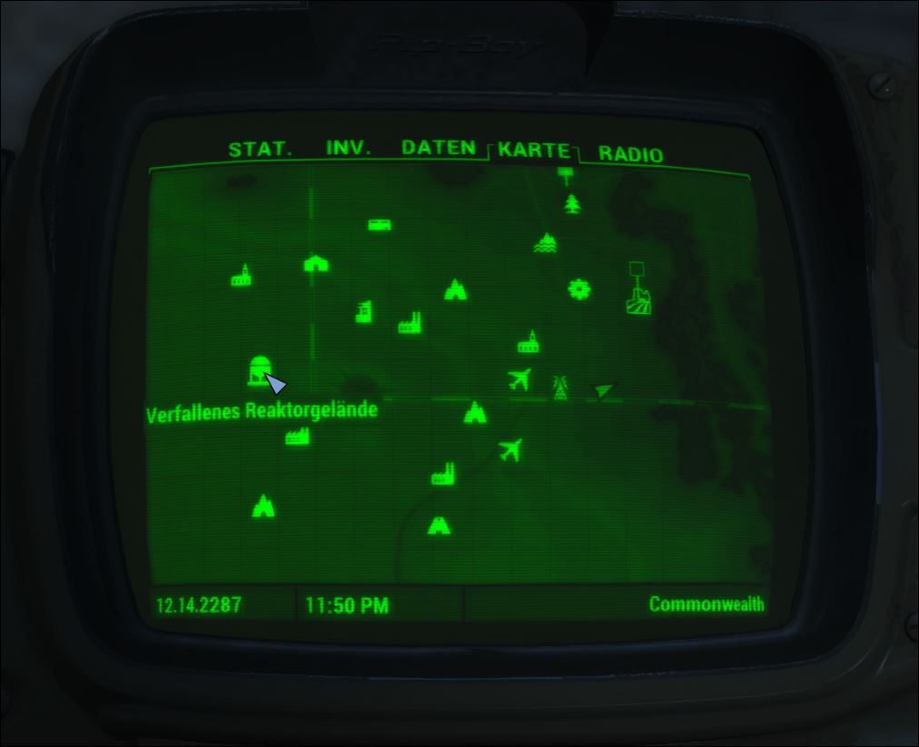 | Diese Datei wurde in dem Video-Spiel Fallout 4 aufgenommen oder stammt von Webseiten, die erstellt und im Besitz von Bethesda Softworks sind, deren Urheberrecht von Bethesda Softworks beansprucht wird. Alle im Bild vorhandenen Warenzeichen und eingetragenen Warenzeichen sind Eigentum von Bethesda Softworks. Die Verwendung von Bildern in Artikeln zur Veranschaulichung des Themas der fraglichen Bilder gilt nach dem US-amerikanischen Urheberrechtsgesetz als fair use, da eine solche Darstellung das Recht des Urheberrechtsinhabers, das urheberrechtlich geschützte Material zu verkaufen, nicht wesentlich beeinträchtigt und in diesem Zusammenhang nicht dazu verwendet wird, Gewinn zu erzielen. |