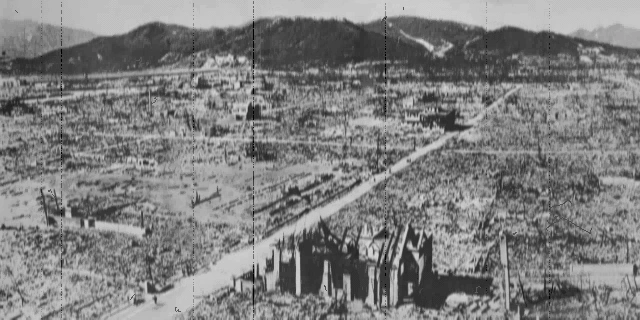 Hiroshima ist eine reale japanische Stadt. Am 6. August 1945 um 8:15 Uhr wurde sie Opfer des ersten Kriegseinsatzes einer Atomwaffe, als die Vereinigten Staaten die Bombe Little Boy über der Stadt zündeten. 70.000 bis 80.000 Menschen starben sofort und insgesamt 90.000 bis 166.000 innerhalb eines Jahres.[3]