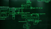 - Anmerkung: der Fallout 3 - Das offizielle Lösungsbuch nennt die untere Ebene des Atrium fälschlicherweise Sublevel von Vault 101. Dieser Fehler ist im Spielführer der GOTY-Version berichtigt.